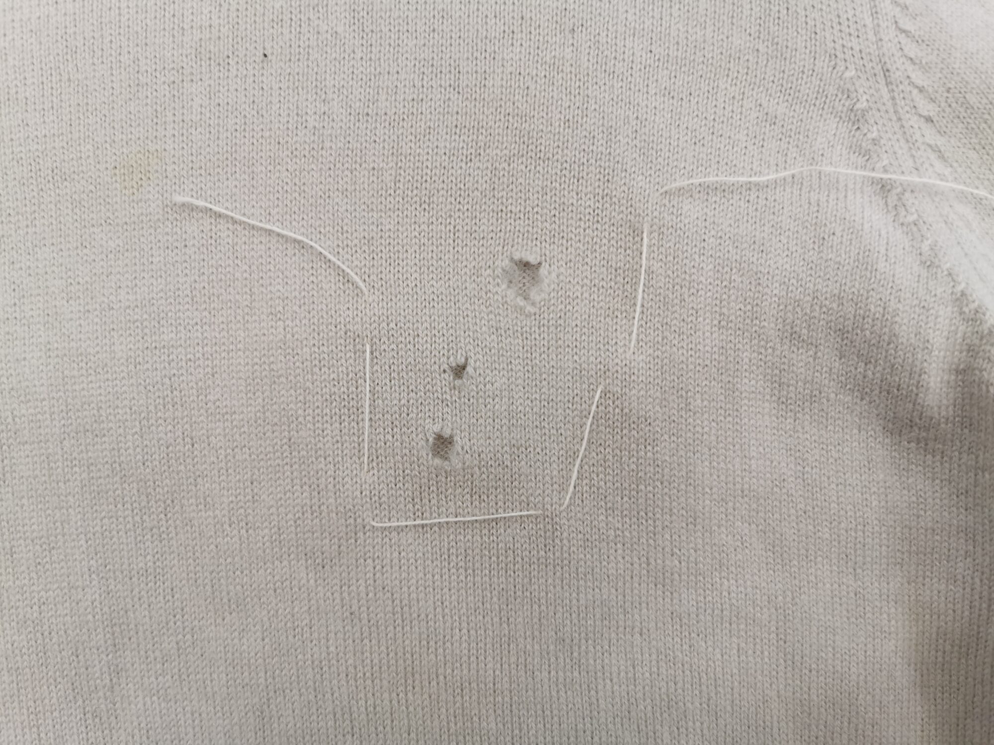 カシミアニット(身頃に複数の虫食い穴(淡い色)