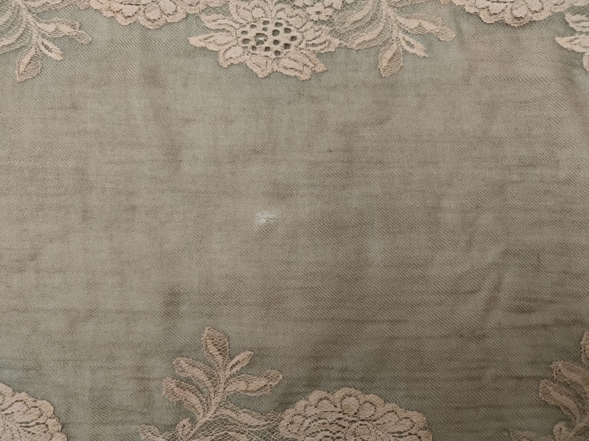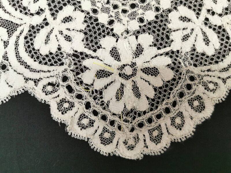 レース部分の裂けや糸切れも、似たようにつなぎ合わせて、限りなく違和感がないようにつなぎます