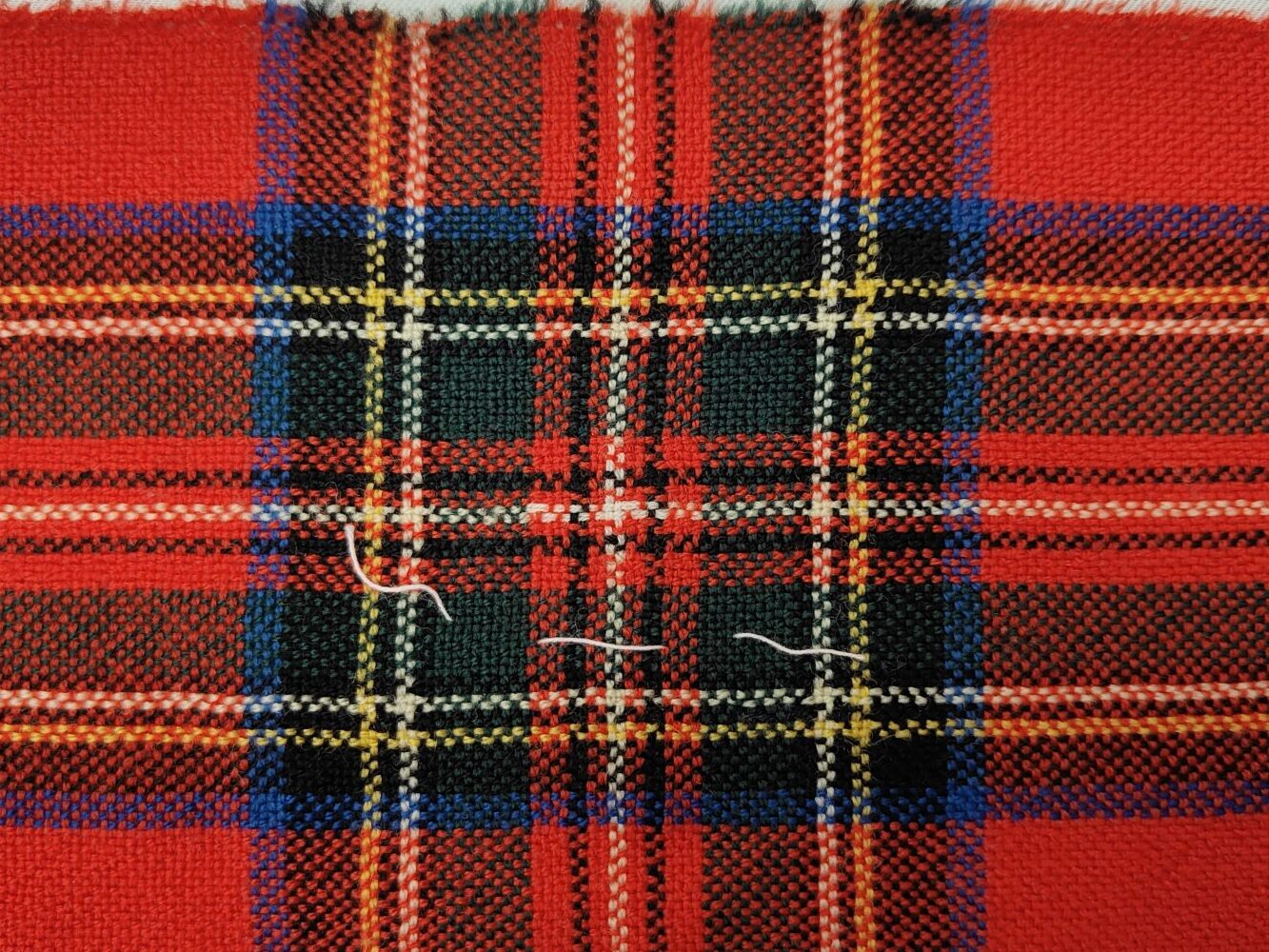 事例②|ジョンストンズ チェック柄カシミヤマフラー 裂けキズ