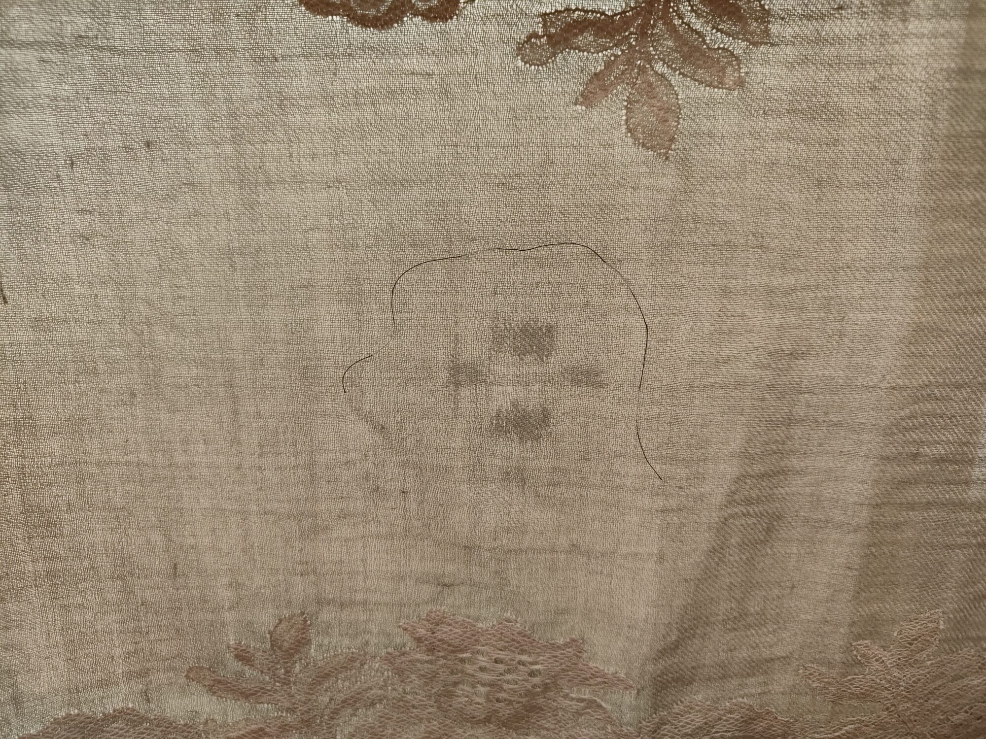 修復方法:似た糸を使い、似たように刺繍をつなぎ合わせて修復しています。
