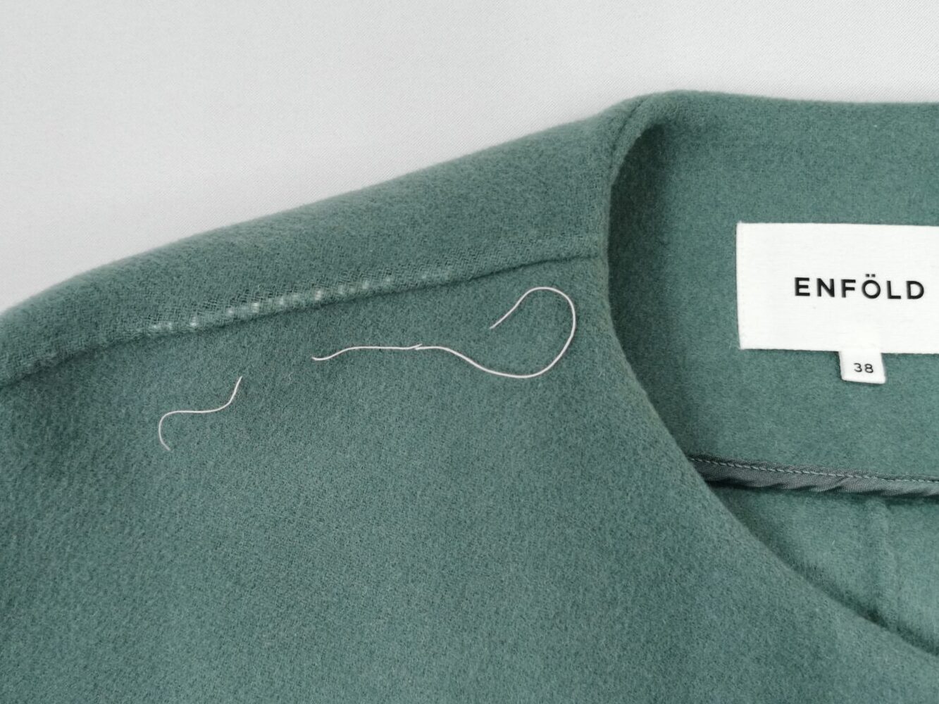 一枚仕立てのコートは裏地がないため、虫食いや引っかけ、擦れによる小さな穴が直接表に現れます
